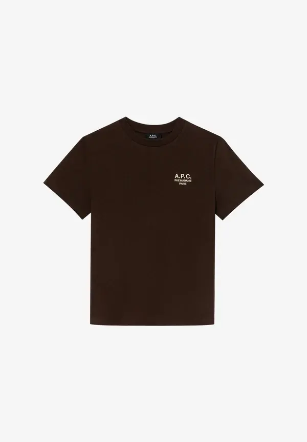 A.P.C. T-Shirt aus dicker Bio-Baumwolle in braun mit gesticktem Logo in ecru.